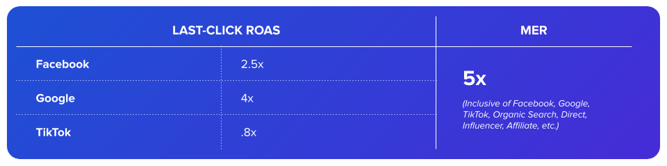For that reason, brands need to look to MER for a more holistic snapshot of the efficacy of their paid media investments.