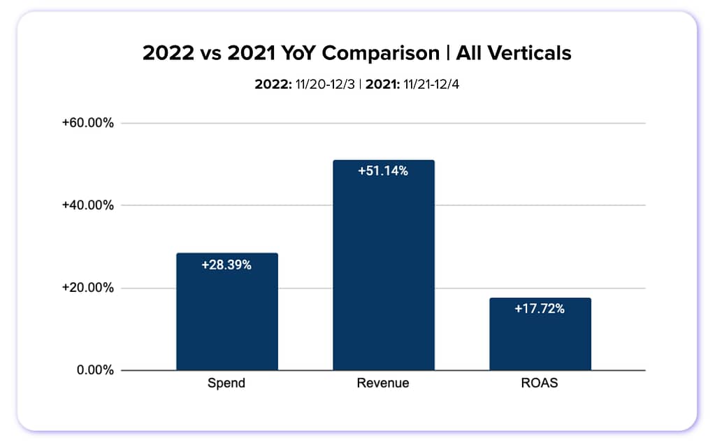 With post-iOS 14 privacy changes negatively impacting the advertising industry’s ability to access audience data for targeting and attribution, brands need to move towards a full(er) funnel media approach in order to efficiently win net new customers. With recent wins with clients taking this approach during BFCM (for instance, one brand saw a 44% increase in net revenue from FTCs with 23% less media spend YoY), the audience scale and qualifying that a full funnel media approach provides is also the strategic play that will ensure sustainable long-term growth.