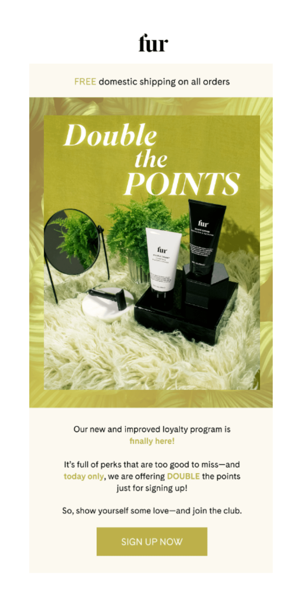 To increase brand loyalty, Fur implemented two new loyalty tiers with incentivized purchase perks to acquire new customers and encourage existing rewards members to continuously engage. We then collaborated as a team across paid and organic channels to creatively and consistently promote and differentiate Fur’s new and improved loyalty program to encourage sign ups.
