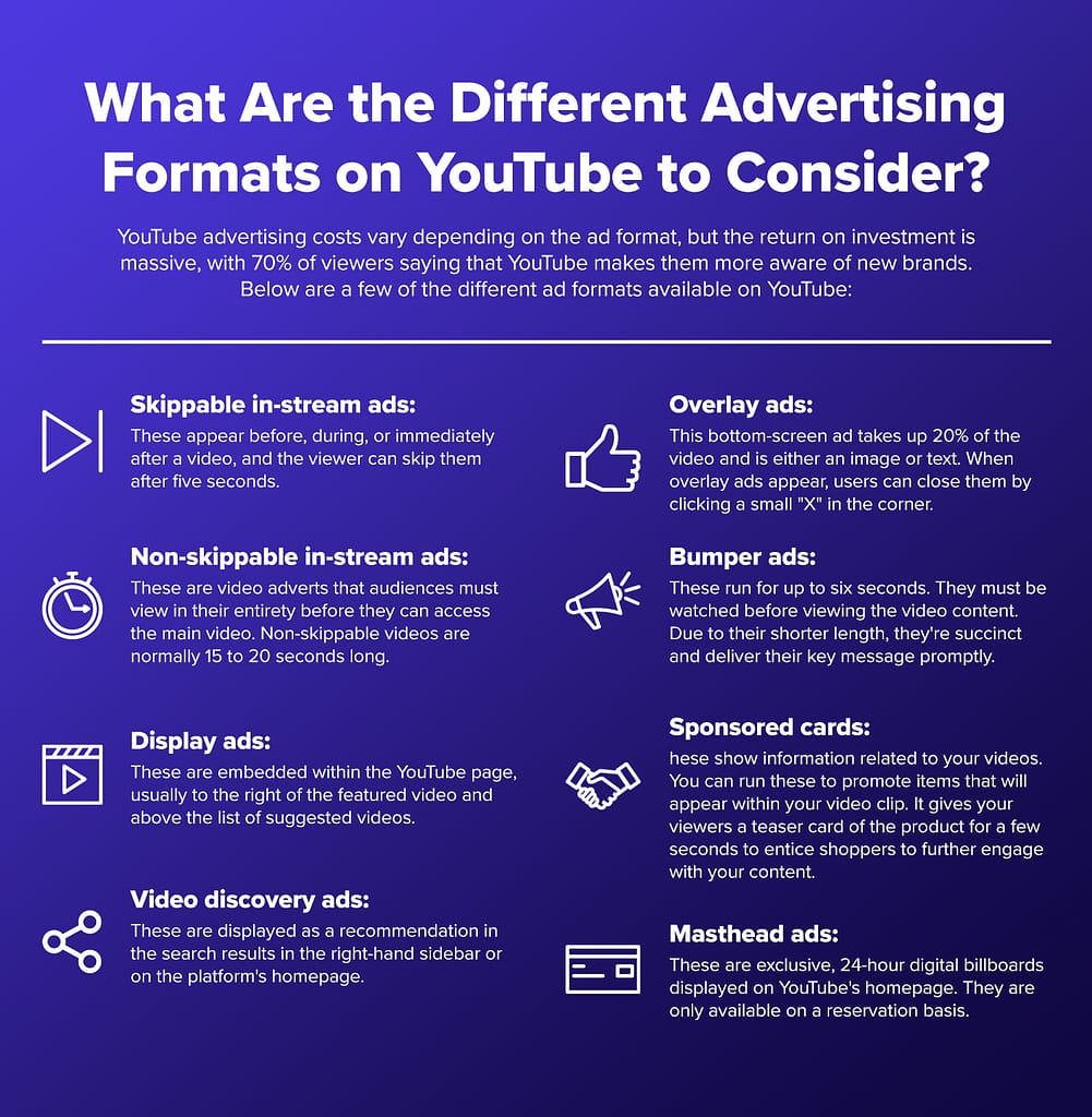 The type of YouTube ad you run impacts your entire YouTube advertising cost, so it’s critical to carefully select an ad type based on your campaign goals and brand identity.