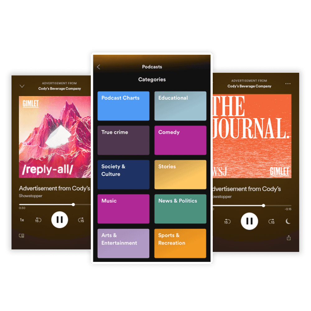 Dynamically insert 15- or 30-second mp3 creatives into streaming radio to individuals targeted with the full array of digital signals, or partner directly with prominent podcasters like Joe Rogan or Lauryn Evarts Bosstick to leverage their trusted relationship with listeners.