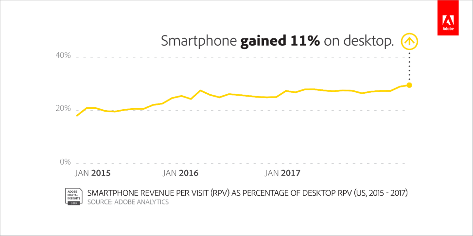 Fast-forward to 2018 and mobile visits continue to crush desktop visits. The amount spent by smartphone users has increased by 11% over desktop users, with forecasts predicting this trend to continue at a faster rate.